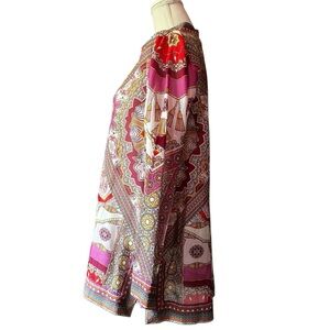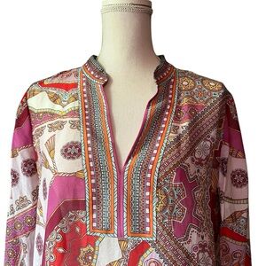 Hale Bob Pink and Red Graphic Silk Tunic with Mandarin Collar Size XL