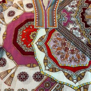 Hale Bob Pink and Red Graphic Silk Tunic with Mandarin Collar Size XL