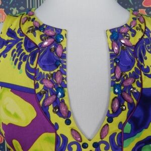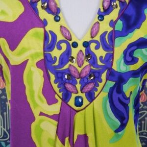 Hale Bob Purple Yellow Beaded Tunic Silk Jersey Mini Dress XS