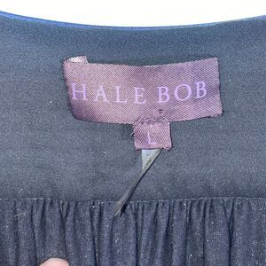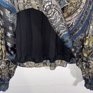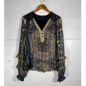 Hale Bob Silk Lurex Blouse Size L Metallic Boho Peasant Top Long Sleeve