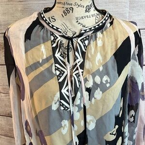 Hale Bob Silk Top Long Sleeves V-neck Sheer Size Medium