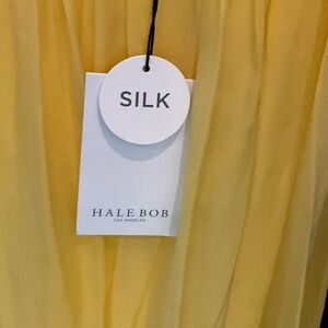 Elevate your style with this vibrant yellow silk camisole from Hale Bob, featuring a sleeveless design with delicate pleats and tiered layers. The airy fabric and elegant drape make it a perfect choice for warm-weather occasions, and the 100% silk fabric adds a touch of elegance.