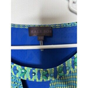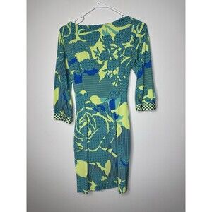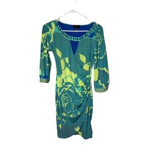 Hale Bob Size XS Printed Dress Green Blue Jewel Keyhole Colorful Ruched