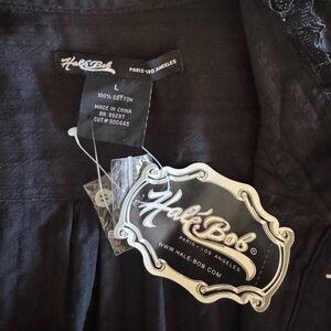 Hale Bob Sleeveless Button Front Ruffle Bib Blouse Top - Black - Women's Size Large - NWT