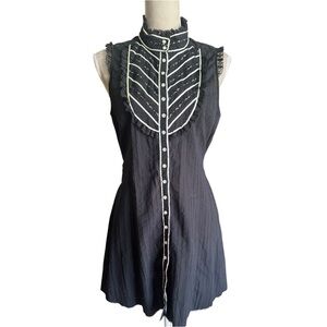 Hale Bob Sleeveless Button Up Shirt Ruffle Bib Blouse Top - Black - Large - NWT