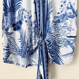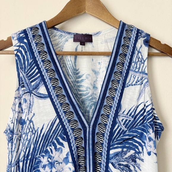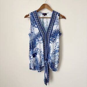 Hale Bob Tie Front Tank Top Small Blue White Floral
