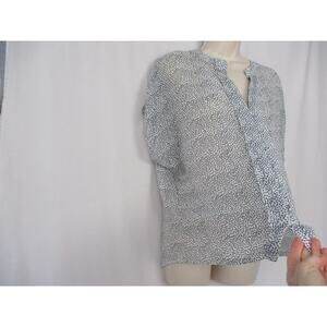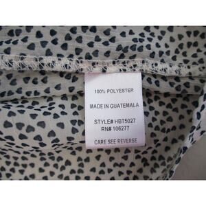 Hale Bob Top Women Large Heart Print Black White Sheer Blouse Cap Sleeve Popover