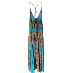Hale Bob Turquoise Blue Long Beaded Front Dress size medium