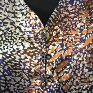 Elevate your wardrobe with this beautiful silky tank top from Hale Bob. The V-neckline and sleeveless design add a touch of sophistication to this basic style. This top is made of comfortable polyester and faux silk material, making it perfect for any occasion. It is machine washable for easy care and maintenance. This multicolor top comes in size small and is perfect for women who love to dress up or down.