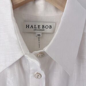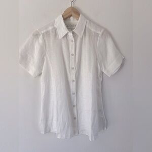 Hale Bob White 100% Linen Button Down Collared Short Sleeve Top Size XS