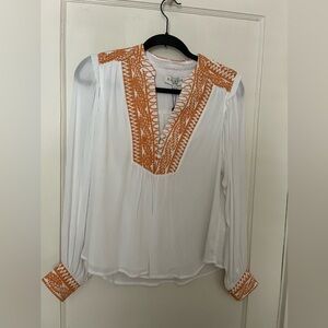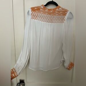 Hale Bob White Blouse with Orange Embroidery