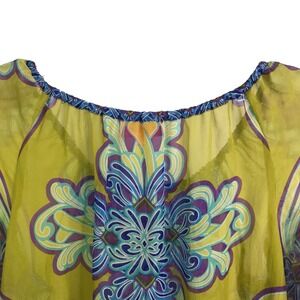 Hale Bob Women's Cabana Blouse Silk Bell Sleeve Boho Festival Green Floral XS