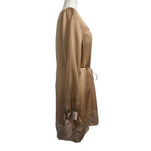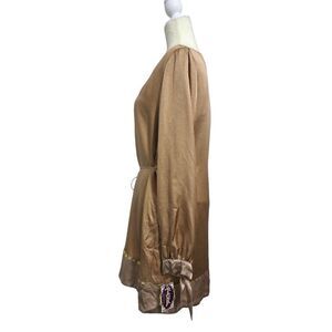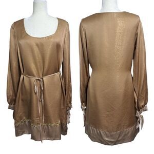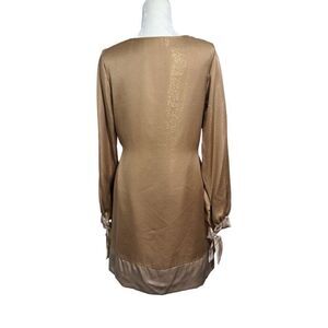 Hale Bob Women's Gold Long Sleeve Silk Blend Party Cocktail Resort Mini Dress L