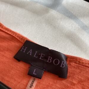 Hale Bob Women's Orange Crochet Fringe Top Size L Boho Vibrant Hippie Festival