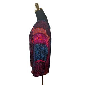 Elevate your boho chic wardrobe with this Hale Bob oversized blouse. Designed in vibrant multicolor paisley and floral prints, this flowy top features a peasant-style silhouette with wide sleeves and a relaxed fit. Known for bold prints and luxe fabrics, Hale Bob pieces are celebrity favorites and add effortless style to any look.