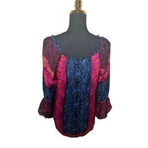Hale Bob Women’s Oversized Boho Blouse Multicolor Paisley Peasant Top Size M