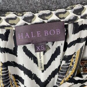 Hale Bob Womens Silk Sheer Abstract Print Blouse Yellow White Black Size XS EUC.