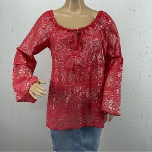 Hale Bob Women’s size XS Hot Pink & Gold Lightweight Peasant Blouse