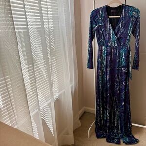Hale Bob Wrap Dress Maxi Size XS with Slit Snake Print