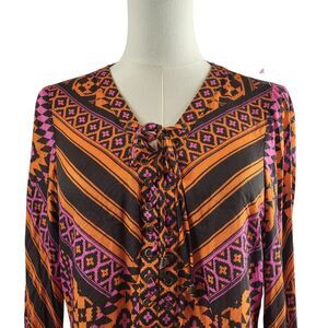 Hale Bob X-Small Multi Color Print All Viscose Blouse Long Sleeves Tie Placard