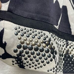 Hale Bob blouse silk beaded sz small black white belted style 8tca2458