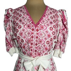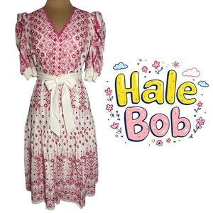 Hale Bob pink and white Logan Embroidered Midi Dress Size Medium