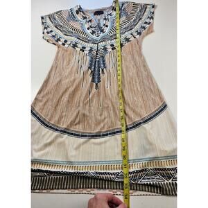Hale Bob small tribal Aztec geometric lined shift dress printed split neck EUC