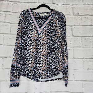 Hale Bob Womens Multicolor Leopard Print Long Sleeve Jane Jersey Top Medium