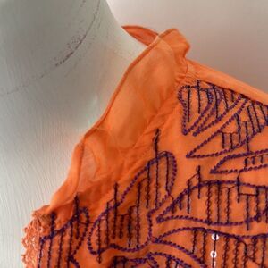 Beautiful semi-sheer orange tunic top with sequins and wrist/sudd slits.