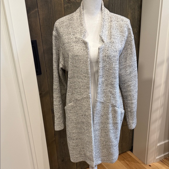 Elevate your wardrobe with this elegant open front cardigan. Its versatile gray hue makes it perfect for any occasion. Worn only a couple of times so like new. Nice weight for fall and winter.