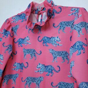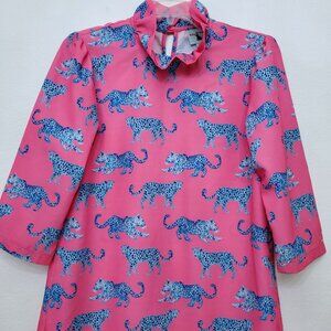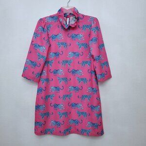 Haley and the Hound Print Ruffle Neck Women's 3/4 Sleeve Swing Dress Size Small