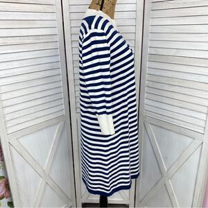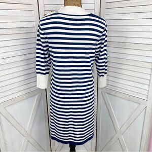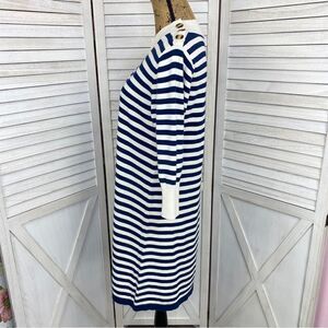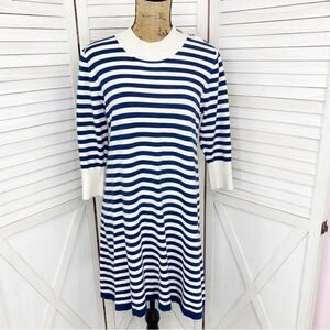 Haley and the Hound Striped Sweater Dress Crew Neck Knit Shift Blue White Medium