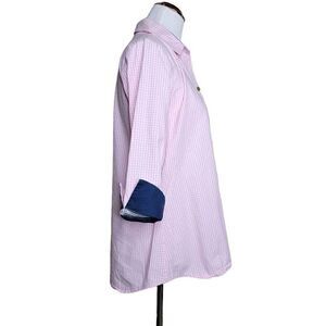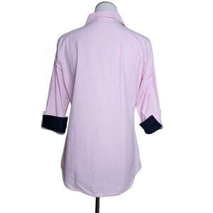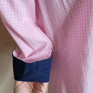 Haley and the Hound Check Button Down Roll Sleeve Shirt Pink White Navy Medium