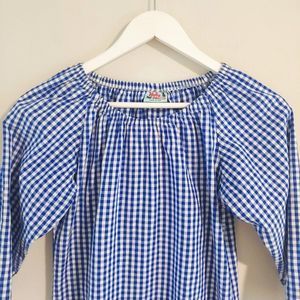 Haley & the Hound preppy blue and white checker top- can be worn off the shoulders aswell - with elastic neck line .100 percent cotton worn one time .