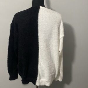 Half Black Half White Eyelash Faux Cardigan V-Neck Sweater NWOT. Sz M (runs large, fit is more like a sz L).