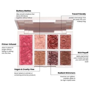 Half Caked Eye And Cheek Palette in the color Duality ll. Individual colors are Just A Crush (Matte Blush), Softie (Matte Eyeshadow), True Love (Shimmer Eyeshadow), Secret Garden (Matte Eyeshadow), The One (Matte Eyeshadow), Cherub Rock (Shimmer Eyeshadow) and Ava Adore (Matte Eyeshadow). Brand new, authentic, in box. One available for purchase.