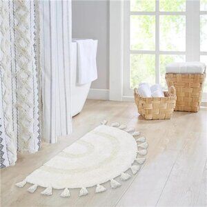 Half Circle Boho Bathroom Rugs with Tassels 100% Cotton Hand-Woven Bath Mat