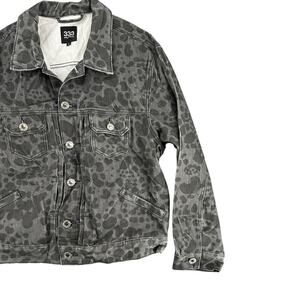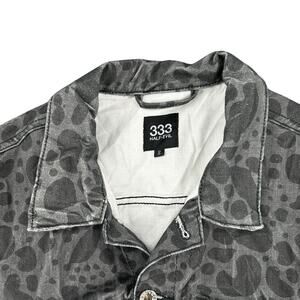 Half Evil 333 Men's Black and Gray Spotted Denim Jacket Retro Streetwear Small