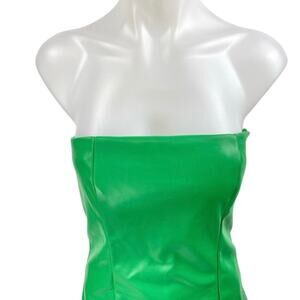 Half Heart Green Leather Sleeveless Strapless Mini Bodycon Tank Tube Dress Sz M