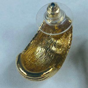 Half Hoop Vintage Pierced Post Earrings Womens Gold Tone Ridged Ribbed Textured. Unbranded.