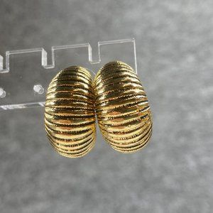 Half Hoop Vintage Pierced Post Earrings Womens Gold Tone Ridged Ribbed Textured