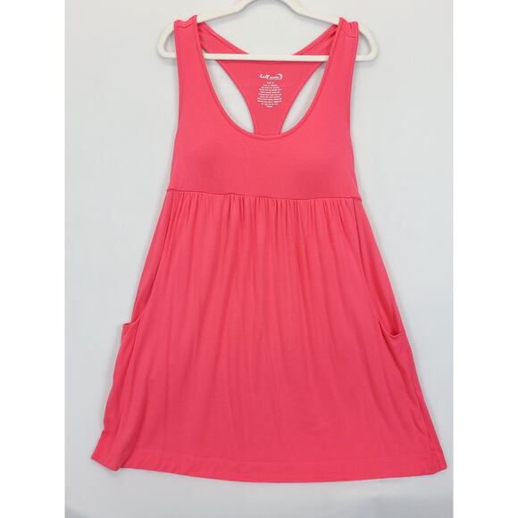Half Moon By Modern Movement Athletic Workout Tank Dress Modal Spandex Knit Removable Cups Pockets Women XL Salmon