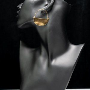 A graceful and elegant bohemian-style hammered gold-tone half moon earring that reflects light in a beguiling manner. Whilst variations in size and markings may be present due to their handmade nature, they remain undeniably alluring.