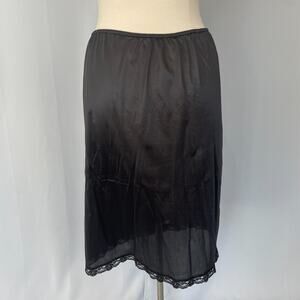 Half Slip Skirt Plus Size 18W 20W Black Solid Nylon Satin Lace Trim Lingerie