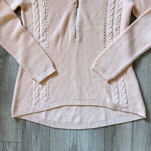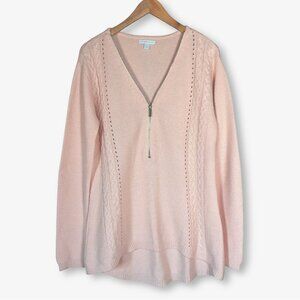 New York & Company Half Zip Light Pink Sweater Womens Medium Preppy Old Money Coastal Grandma