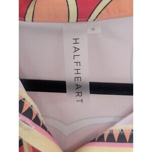 HalfHeart Mod Hippie 70s Button Tie Rouged Short Sleeve Midi Dress Size Medium