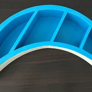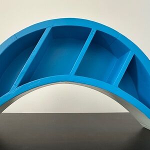 Add a touch of charm to your space with this half-moon wooden shelf — perfect for nurseries, playrooms, or cozy corners. Features a light blue interior, navy blue exterior, and a gray backing for a modern, calming look.
