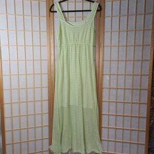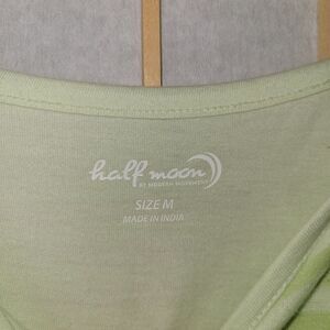 Comfy sundress from Half Moon. Size medium. Elastic waist. Lined half skirt over full semisheer shell. Shell 58% polyester, 42% cotton. Lining 60% cotton, 40% polyester. Machine washable. Made in India. Excellent condition. Nonsmoking home.