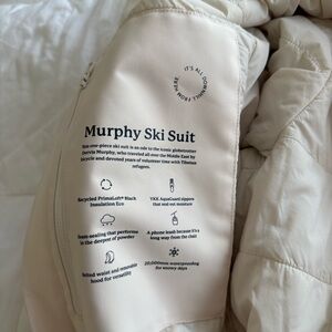 Half days Murphy Ski Suit in color Oat Milk. Retails $695, worn twice just not living in a ski town anymore so don’t need it. Two spots of imperfections featured but otherwise in excellent condition. #halfdays #skiing #winterwear
