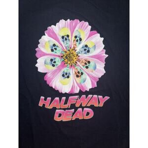 Authentic Halfway Dead graphic tee featuring a bold skull flower design.